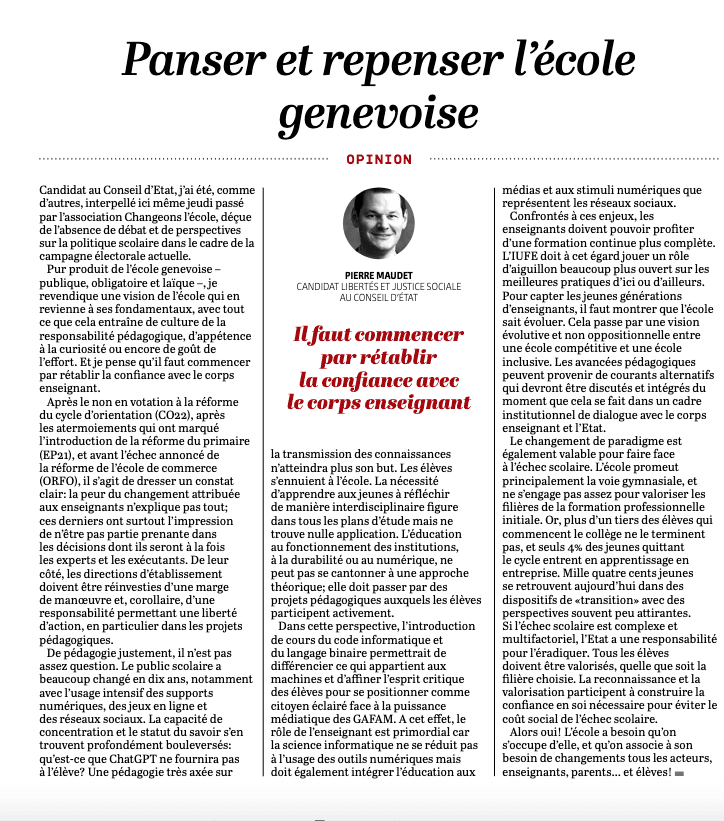 interview de Pierre Maudet dans GHI